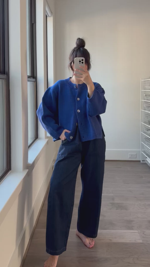 These pants have thoughtful design details like an elastic high waist that gives you a room to breath, slightly curved leg shape, cropped length to show off your favorite socks and shoes, unique side panels and deep pockets. The heavy-weight canvas material likely adds durability and gives them a structured look. The Arc pants would make a great addition to everyone's wardrobe and complement to all the Le Bon Shoppe pieces you own!