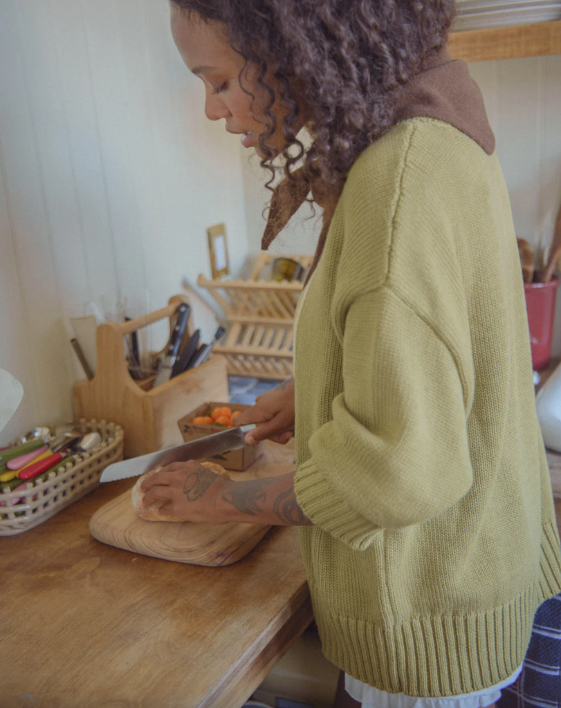 The Shelle Sweater is a special piece inspired by cherished heirlooms passed down through generations. Made from 100% organic cotton, it has the soft, worn-in feel of a favorite knit sweater you might find tucked away in your grandmother’s closet—the kind you never want to take off.