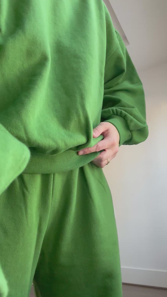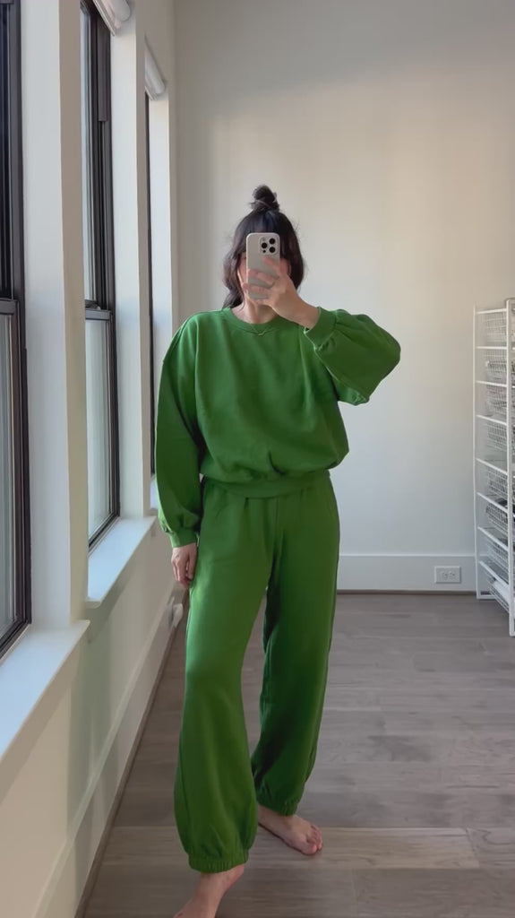 The sweatshirt you’ll reach for again and again. With a smooth outer finish and soft French terry interior, it feels like your favorite vintage crew—easy, cozy, and perfectly broken in. Its relaxed, boxy fit makes layering effortless no matter how you style it.